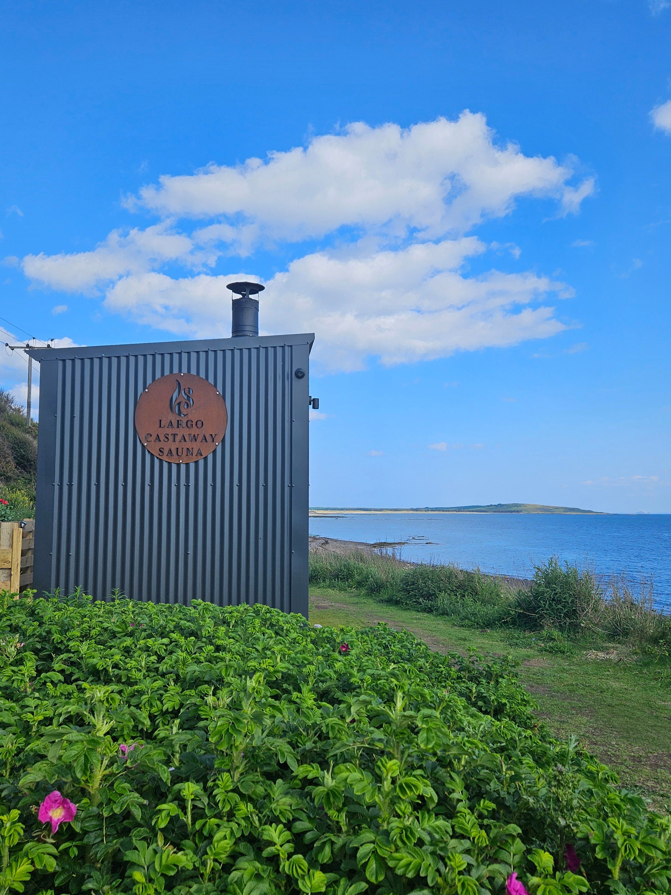 OPEN SAUNA MAPLargo Castaway Sauna is a wood-fired sauna situated on the beach at Lower Largo, Fife. Housed in a bespoke trailer with a Narvi 30 stove, it offers panoramic views of the sea and direct access to the water for swimming. The facility provides cold water buckets, a changing canopy, and outdoor seating.